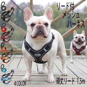 犬ハーネス リード 小型犬 中型犬 リード付き 脱げない 頑丈 光反射 軽量 簡易装着 メッシュ 散歩 おしゃれ かわいい 首輪