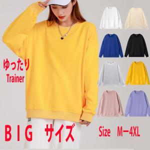 トレーナー レディース メンズ スウェット ユニセックス ゆったり 大きいサイズ プルオーバー クルーネック 無地 ビックシルエット スポーツウェア 体型カバー