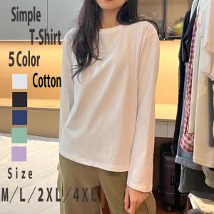 ゆったり tシャツ 長袖tシャツ 大きいサイズ メンズ レディースTシャツ コットン ユニセックス 無地 クルーネック 長袖Tシャツ