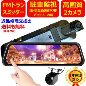 【FMトランスミッター 駐車監視】 ドライブレコーダー ミラー型 前後カメラ タッチパネル 10インチ ドラレコ 150°広角レンズ 前後同時録画 ループ録画 衝撃検知