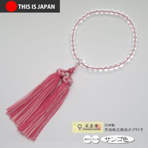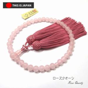 数珠 念珠 数珠袋付 京念珠 正規品タグ付 京ふさ正規品ID付 ローズクォーツ ローズピンク房色 女性用
