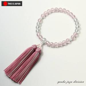 数珠 念珠 京念珠 正規品タグ付 京ふさ正規品ID付 本 水晶 灰桜色 女性用 8寸 浄土真宗 本式数珠 天然石
