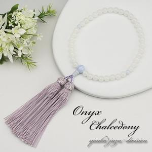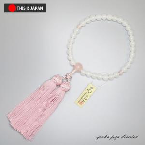 数珠 念珠 数珠袋付 女性用 約8mm 白オニキス 2天 ローズクォーツ 正絹房京念珠 正規品タグ付 京ふさ正規品ID付
