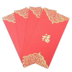 紅包 中国 ご祝儀袋 福39 紅金福 福気満満 薔薇紋 4枚 190g/m2