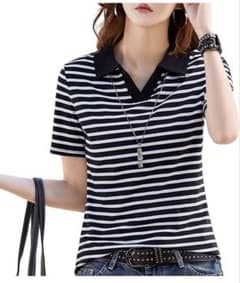 ポロシャツ レディース 半袖 夏 ゆったり ボーダー 綿 オフィス カジュアル