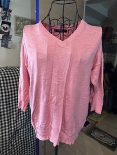 BLISS POINT ピンク Vネック セーター 五分丈