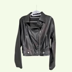 フェイクレザー ライダースジャケット ブラック ショート丈 ダブル風 Mサイズ