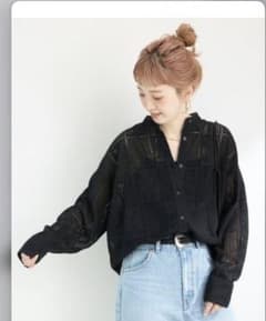手洗い可 レースシャツブラック 長袖