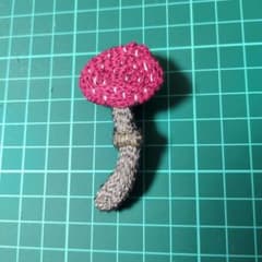 ハンドメイド・キノコの手刺繍ブローチ