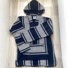 手ぬぐい墨染め古布唐草模様風呂敷リメイクフーデットプルオーバーちどりに波