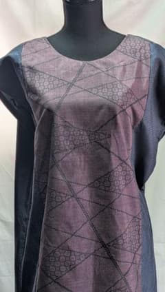 藍染、筒描、風呂敷の手縫いAラインワンピース