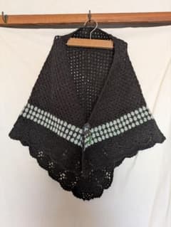 手編み 三角ショール メランジ 水色 グリーンブルー 2色カラー