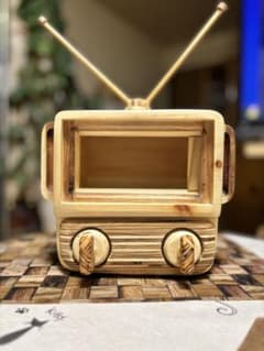【iPhone14.15対応】木製レトロ風スマホテレビ