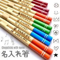 【木製*名入れ・文字入れ箸 (子ども用)】音楽記号 スマイル リボン 星…送別ギフト 卒園ギフト 入学準備 記念品