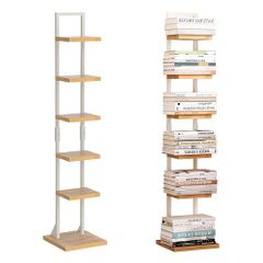 本棚 ブックタワー ブックシェルフ タワー 大容量 収納棚 隙間収納 収納ラック オープンラック シェルフ 木製棚板 スチールフレーム 本棚 おしゃれ 省スペース 組立簡単 書棚 インテリア (白いフレーム, 6段)e