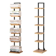 Fuwata 本棚 ブックタワー スリム 6段 大容量 幅30cm×高さ143cm 収納棚 隙間収納 収納ラック オープンラック シェルフ 木製棚板 スチールフレーム 省スペース 組立簡単 書棚 インテリア (黒いフレーム, 6段)e