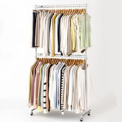 メタルハンガーラック大容量頑丈棚付きコート掛けれる組み立て簡単白ホワイト
