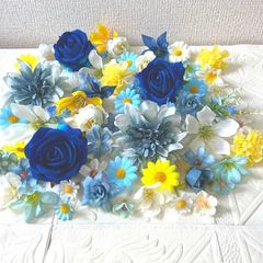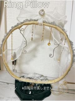 リングピロー バスケット かご 青と白の花 ハンドメイド