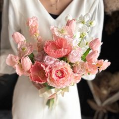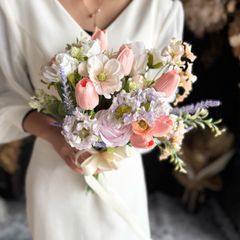ウェディングブーケ・春ブーケ・チューリップブーケ・くすみカラーブーケ