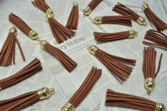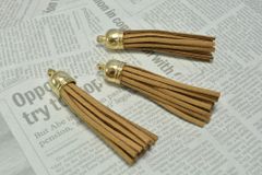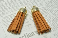 ミニ スエード タッセル チャーム NO.17キャメル 2個 37mm ピアス イヤリング ゴールド ビーズクラブ