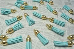 ミニ スエード タッセル チャーム NO.13ターコイズ 2個 37mm ピアス イヤリング ゴールド ビーズクラブ