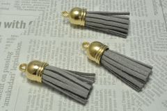 ミニ スエード タッセル チャーム NO.16グレー 2個 37mm ピアス イヤリング ゴールド ビーズクラブ