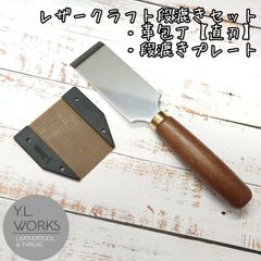 レザークラフト 段漉きセット 革包丁【直刃】+段漉きプレート ss-02