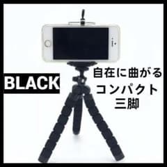 曲がる 三脚 可動式 スマホ スタンド付 ブラック 黒