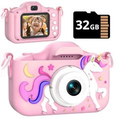 Tecnock キッズカメラ 日本語対応 子供用カメラ 4800万画素 1080P 動画 8倍ズーム 2.0インチIPS画面 音楽プレーヤー ゲーム機能 ユニコーンシリコン保護ケース付き 32GB SDカード プレゼント 男の子 女の子 プレゼント 誕生日☆彡