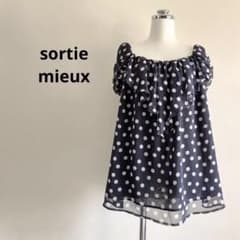 【美品】sortie mieux ネイビーブラック ドットオフショルダーブラウス