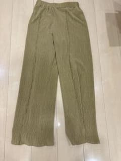オリーブグリーン プリーツ ワイドパンツ