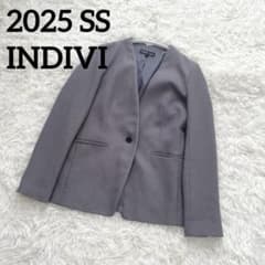 美品 25SS【INDIVI 麻調ノーカラージャケット】パイピング