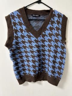 ヴィンテージ アーガイル柄Vネックニットベスト M ネイビー レイヤード 重ね着