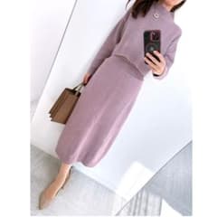 ヒアーズ ニットワンピース ひざ丈 黒 L ゆったり シンプル カジュアル
