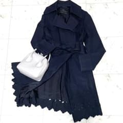 美品 ELLE ステンカラーコート ネイビー スプリングコート Lサイズ