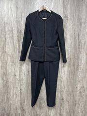 Newlyme ノーカラー オケージョン フォーマル セットアップ ジャケット パンツ スーツ sizeS/濃紺 ■◇ レディース