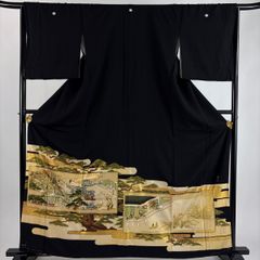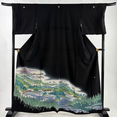 落款入り作家物 村下信吉 黒留袖袷着物 風景花文