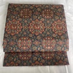 ZF-1275 名古屋帯 縮緬 型染 太鼓柄 九寸 正絹 美品