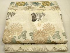 丸帯 西陣織 火焔太鼓 瑞鳥 オフホワイト アンティーク着物 AO-0381