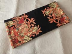 5k2818 丸帯 両面全通 金色 黒 赤 柄物 和装 着物