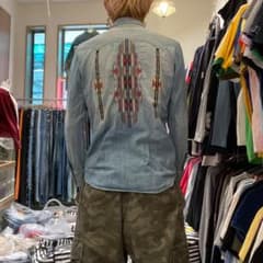 ◇ エージェムナイン【F】ドッキングデニムシャツ 長袖 チェック プリントロゴ