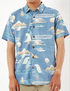 Lauhala ハワイ製 ビンテージ 総柄 半袖 アロハシャツ青 Sサイズ