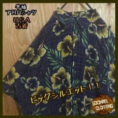 アロハシャツ レーヨン 半袖 テロ感 総柄 ネイビー オーバーサイズ 3XL