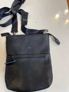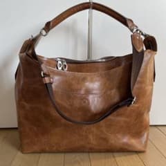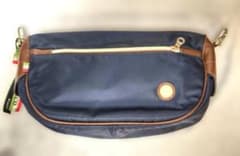 Bianchi レザーショルダーバッグ ネイビー/ブラウン