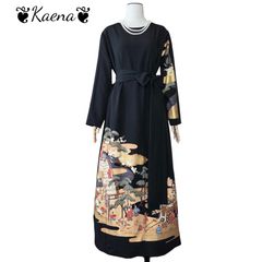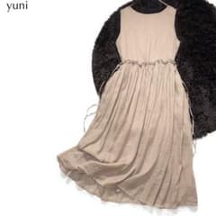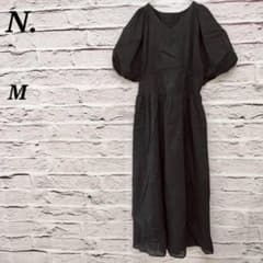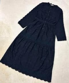 コルザ ロングフレアワンピース ドット柄 レース ブラック M