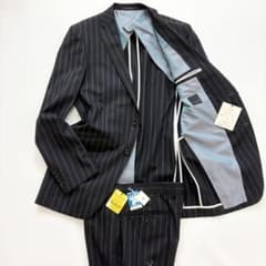 MULTI MIX MEN ストライプ柄シングルセットスーツ 黒/BZ356