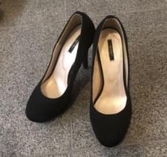 ces puzzles 別珍リボン付き黒パンプス 中ヒール(サイズ23.5)