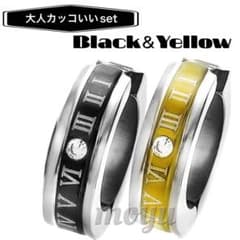 フェイクピアス メンズ 韓国 おしゃれ 2点 イヤーカフ 黒 黄色 新品 人気