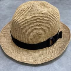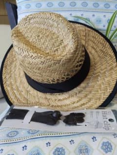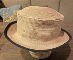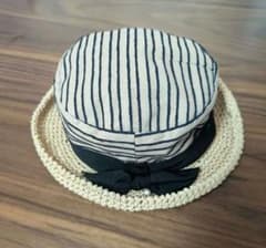 GU ベージュの麦わら帽子 黒リボン付き サイズ調節可能