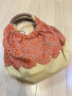 ハンドメイド デニム生地 クリアハンドル ハンドバッグ ベージュ
